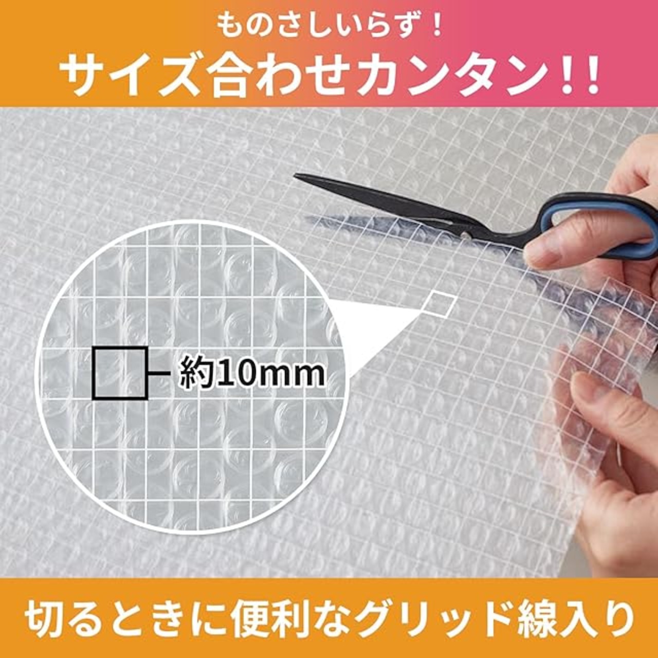 【カンタン貼り付け】グリッド入りでラクラクまっすぐ切れます!凹凸ガラスに使える透明シール付き