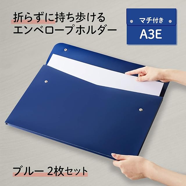 プラス ポケット付エンベローブ(マチ付ファイルバッグ)A3ヨコ ブルー 2枚 88-576