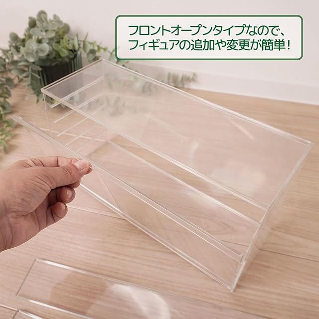 フロントオープンタイプなので、フィギュアの追加や変更が簡単、倒れてもさっと起こせます。