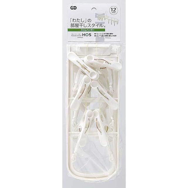 オーエ 洗濯 物干し ハンガー 2個セット ホワイト 約縦8.5×横44×奥行19.5cm HOS スリム バサミ 12個付 部屋干し