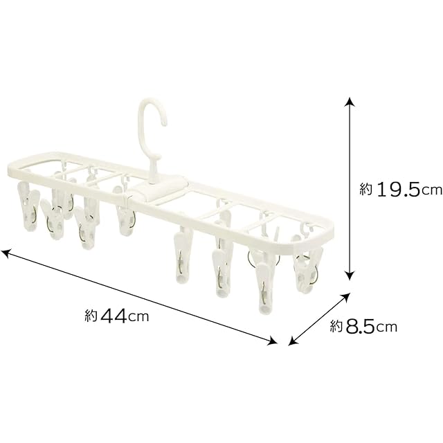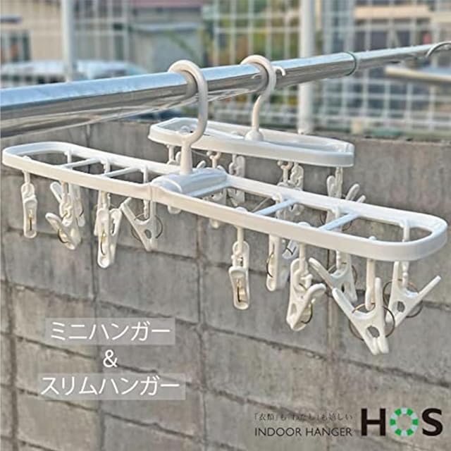 商品名:オーエ 洗濯 物干し ハンガー 2個セット ホワイト 約縦8.5×横44×奥行19.5cm HOS スリム バサミ 12個付 部屋干し