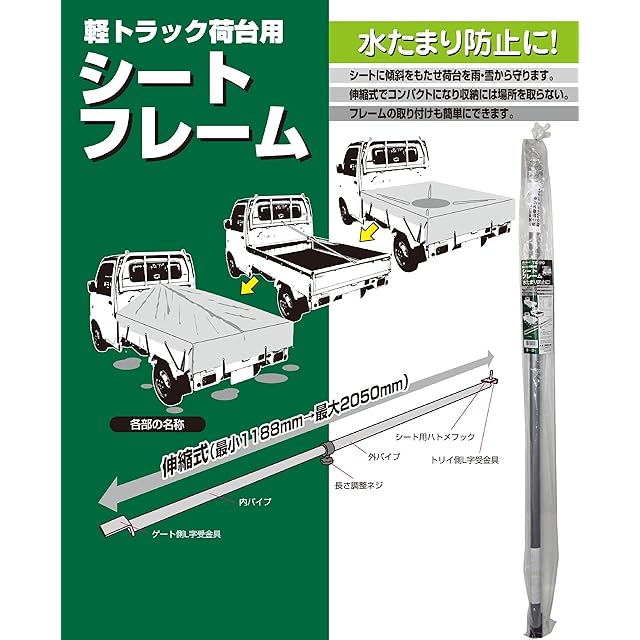 商品名:メルテック(meltec) 軽トラック荷台用シートフレーム 軽トラ用品 最大長約2m Meltec TK-110