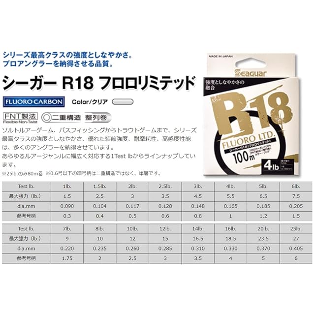 商品名:シーガー(Seaguar) ライン シーガーR18 フロロリミテッド 釣り用フロロカーボンライン 100m (0.4号) 1.5lb クリア