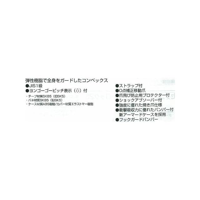 テープ材質 SK85(旧 SK5)、バネ材質 SK85(旧 SK5)、 ケース材質 ABS 樹脂/カバー材質エラストマー樹脂