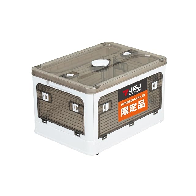 【.co.jp 限定】JEJアステージ(JEJ Astage) 折りたたみ式収納ボックス Sサイズ ホワイト 蓋付き 積み重ね 全方向から取り出せる 収納ケース 収納 折り畳み コンテナ ボックス プラスチック キャスター付き 組立簡単 [W40.5㎝xD29㎝xH24㎝] [並行輸入品]