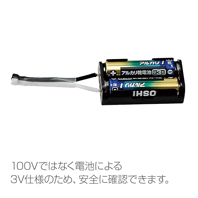 乾電池による3V仕様のため、安全に確認できます。100Vでの使用はしないでください。