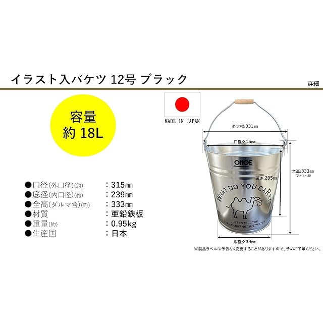 商品名:尾上製作所(ONOE) イラスト入バケツ12号ブラック [18リットル ガーデニング 園芸 キャンプ アウトドア 防災グッズ 口径31.5 x 底径23.9 x 深さ29.5cm 日本製]