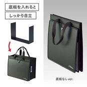 【特長】底板を入れるとしかっり自立、抜き取るとスリムに持ち運べる