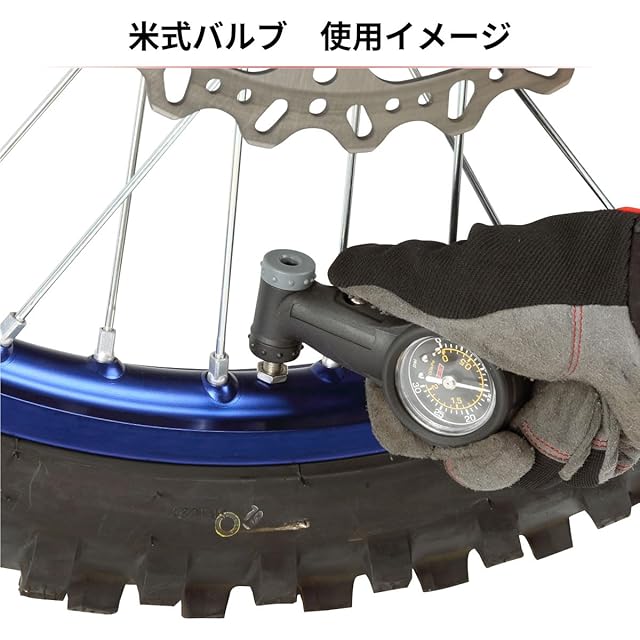 モーターサイクル・MTB専用エアゲージ。米式・仏式バルブに対応。