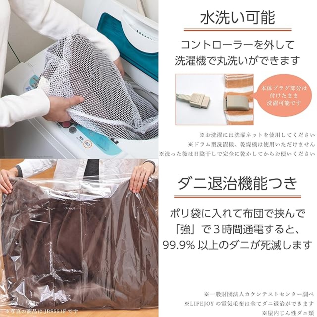 ライフジョイ 電気毛布 日本製 掛け 敷き 兼用 188cm×130cm 洗える 両面フランネル 室温センサー付 タイマー機能無 ふわふわ モカ JCBR803M