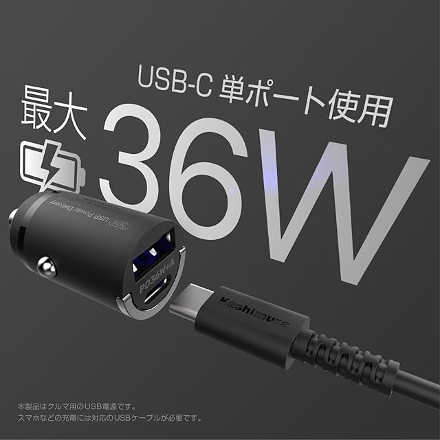 USB-CポートはUSB PDの高速充電に対応 (最大36W)