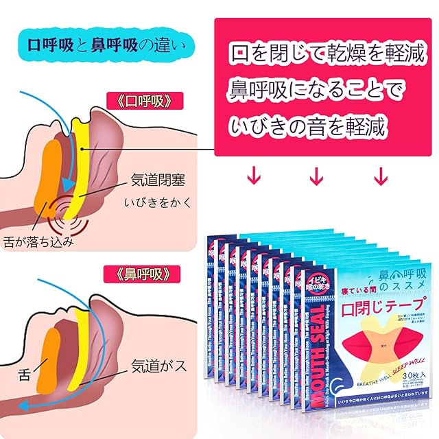 いびき音量軽減:口呼吸の減少、喉の乾燥防止、いびき音量軽減。他人の為に、自分の眠り質向上の為に!