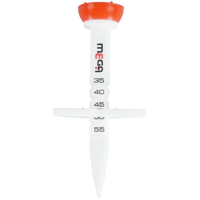 メガ ボールマーカー付 コントロールティー 高さ調整可 35mm - 55mm ゴルフ ティー レッド
