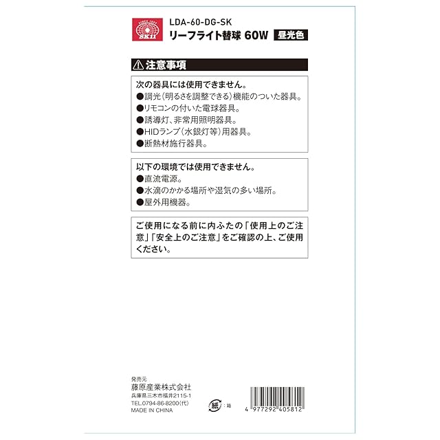 SK11(エスケー11) LEDリーフライト替球 屋内用 60W 6600lm 昼光色 LDA-60-DG-SK