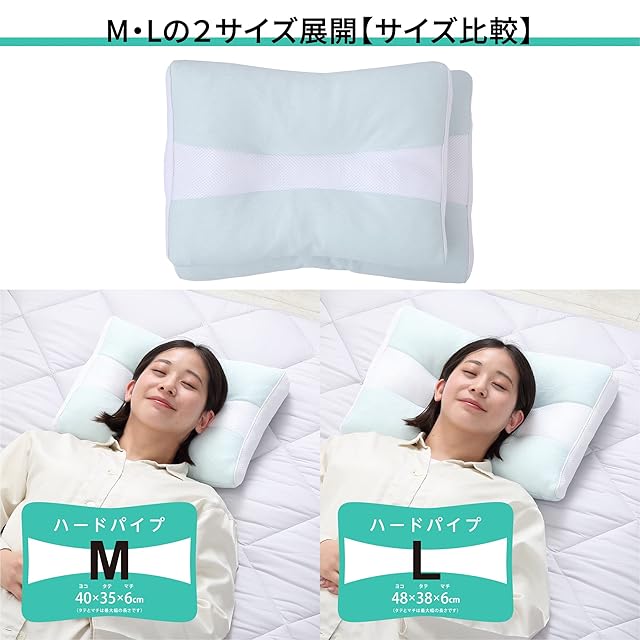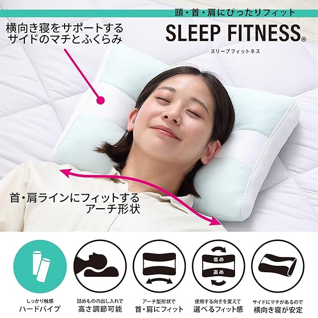 首・肩に沿うアーチ型形状と後頭部が収まりやすいくぼみ形状で頭にフィット。枕の使用向きを変えれば高め・低めが選べてお好みのフィット感でお休みいただけます。