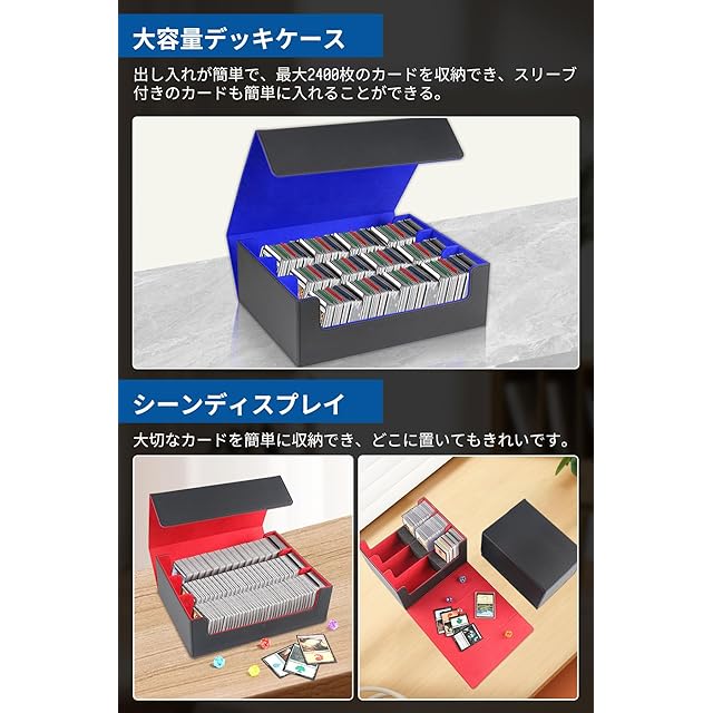 【大容量 2400枚のカードを収納できます】弊社とカードコレクターが共同で設計したデッキケースは、合理的な収納サイズを備えています、出し入れが簡単で、最大2400枚のカードを収納でき、 スリーブ付きのカードも簡単に入れることができる。より良いカード収納方法、簡単で便利です、散らかったコレクション習慣を解決する良い方法。