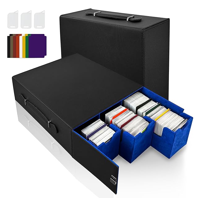 商品名:HG CHASING TRIBE デッキケース トレカケース PU レザー 引き出し式 カード2400枚収納 大容量 スリーブ対応 トレーディングカードケース (黒、ブルー, 引き出し式/2400枚のカード収納)