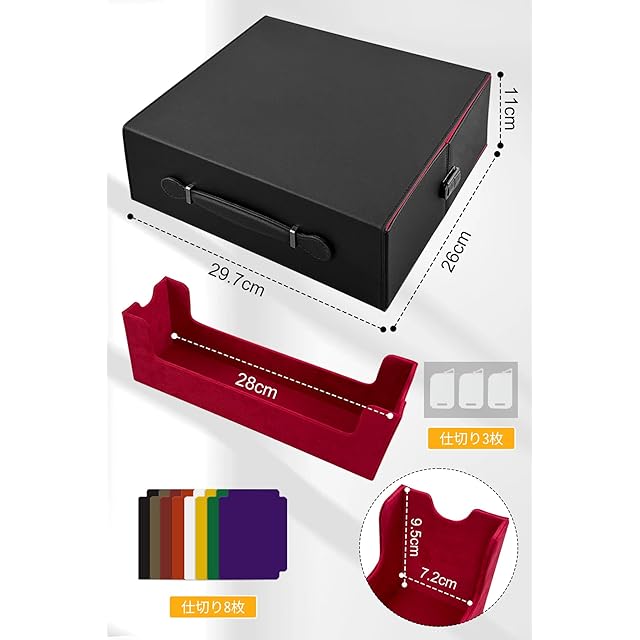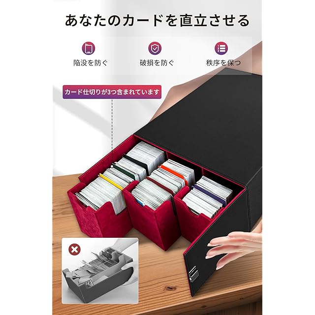【より合理的なカード収納デザイン理念】デッキケースはより新しい引き出し式の構造を採用しており、取り出しや収納が非常に便利です.また、家のどこに置いても非常に美しく見えます.手提げ式のデザインで、カードをどこへでもより便利に持ち運べます.さらに、磁石式のロック機構により、カードが散乱するのをより確実に防ぎ、保護することができます.3枚の仕切りがついていて、カードが直立した状態を保ち、崩れて散らばらないようにしています. 付属の8枚のカラーセパレータにより、カードをよりよく分類できます.
