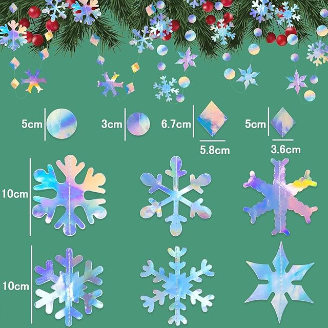【商品内容】:雪の結晶ガーランド3本、総長さ約12m、素材:ペーパー、カラー:虹色、サイズ:詳細はサイズの畫像をご參照ください、