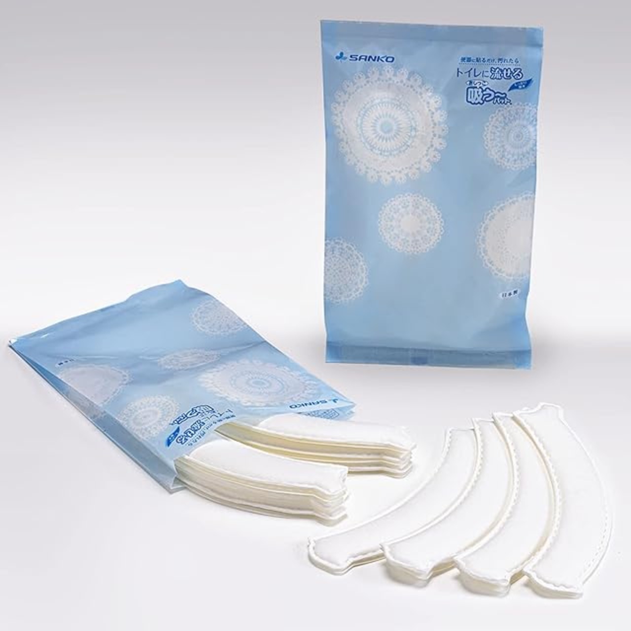 【流せるタイプ】トイレの汚れ防止パット20個入り。おしっこの飛び散りや垂れを防ぎ、床を汚しません。