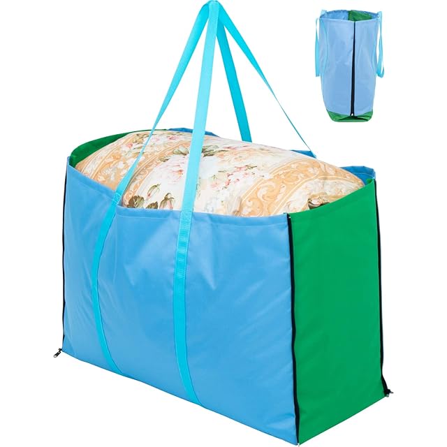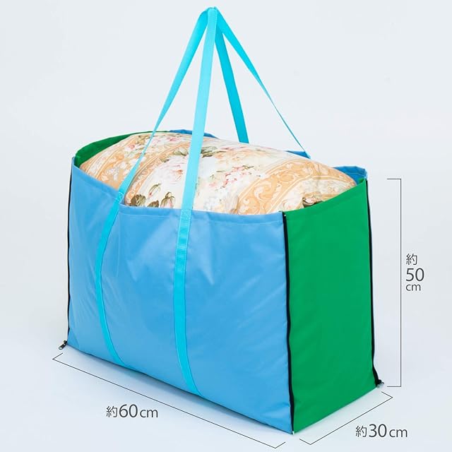 【商品仕様】:サイズ/約幅60×奥行30×高さ50cm(ファスナーを開いた状態)、カラー/ブルー×グリーン、内容/1個、収納目安/薄手シャツ:約80~85枚・厚手セーター:約20~25枚・羽毛布団(シングル・ダブル兼用):1枚、耐荷重/約10kg、材質/ポリエステル・ポリプロピレン