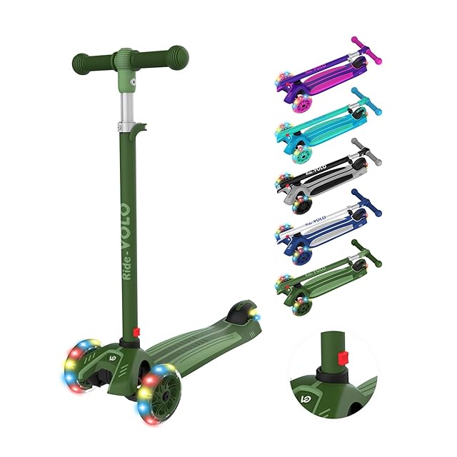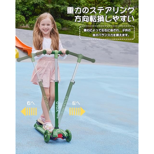 RideVOLO キックスクーター 子供向けキックボード キックスケーター 女の子 三輪車 三段階高さ調整 光るLEDタイヤ 耐荷重50kg アウトドアに適用 おもちゃ 安定 深い緑