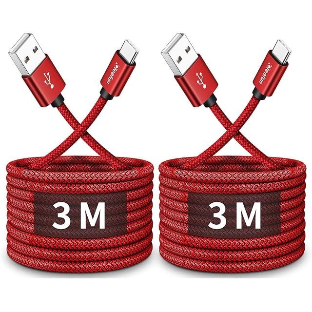 【3m&2本】3m長さのusb cケーブルで、線長不足の心配不要!遠いところでも使用可能です。例えば、学校、自宅、職場、充電コンセントなどから離れている旅行に最適です。また、2本があり、予備用として一緒に購入できます!