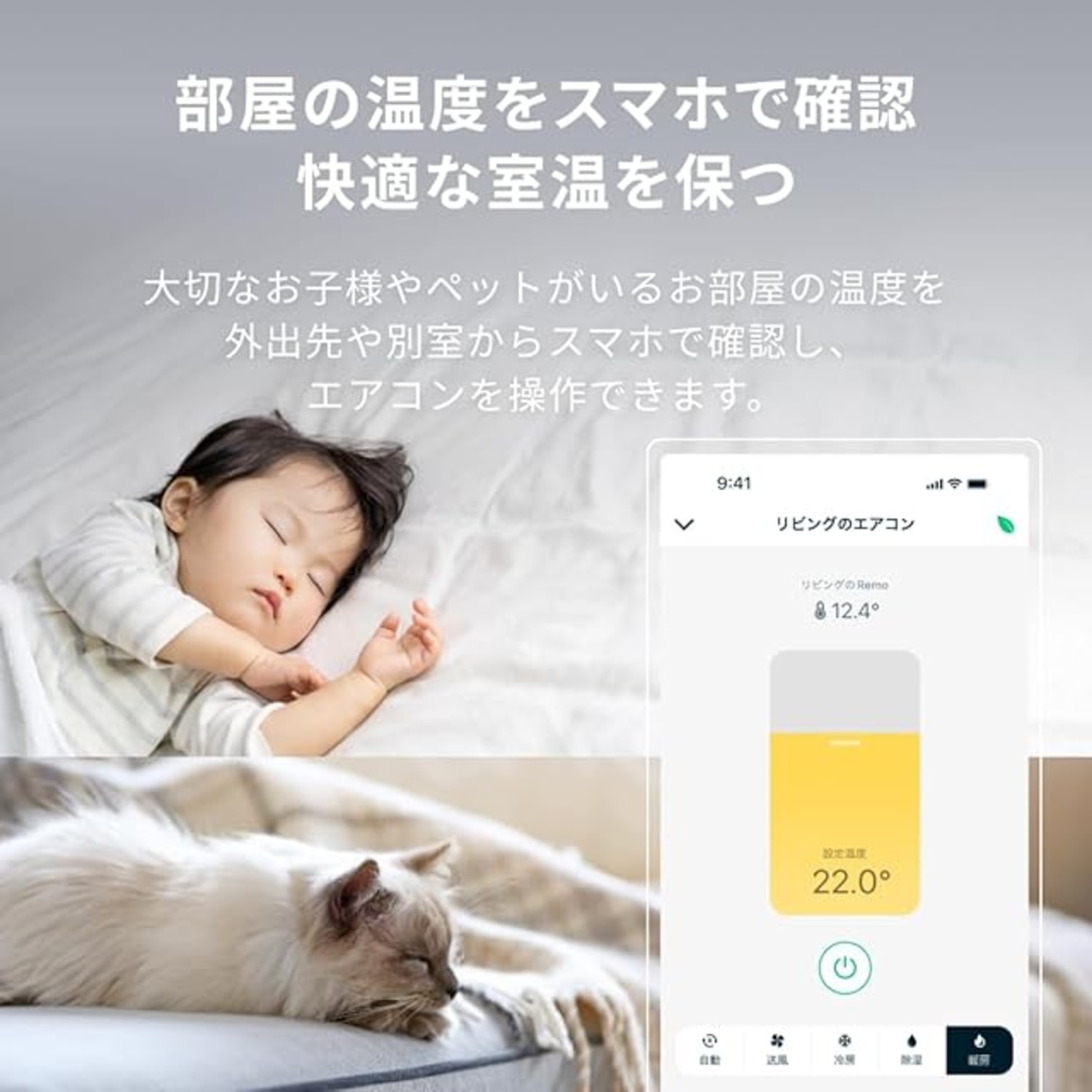 【温度センサーで室温管理】スマホから0.1℃単位で室温を確認。室温に敏感なお子様やペットがいる方にも。