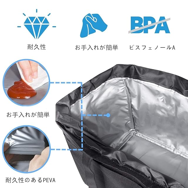 ➤『耐久性・絶縁性』絶縁エコバッグは破れにくい600Dポリエステル製。底部は5mm強化コットン強化構造で耐久性に優れ、お手入れも簡単です。