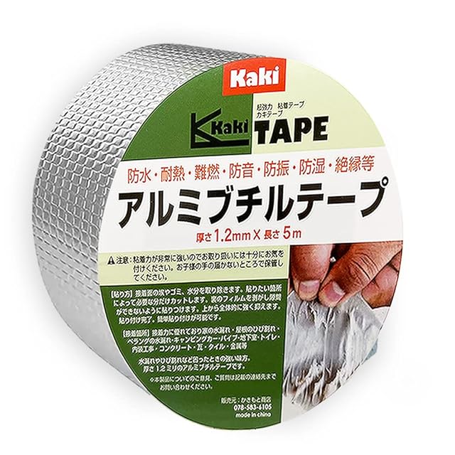 [かきもと商店] 超強力 アルミブチルテープ 5cm×5m 防水 ダクトテープ 補修 ブチルテープ 防水 絶縁 難燃 水漏れ 雨漏り 水回り 配管 パイプ 屋根