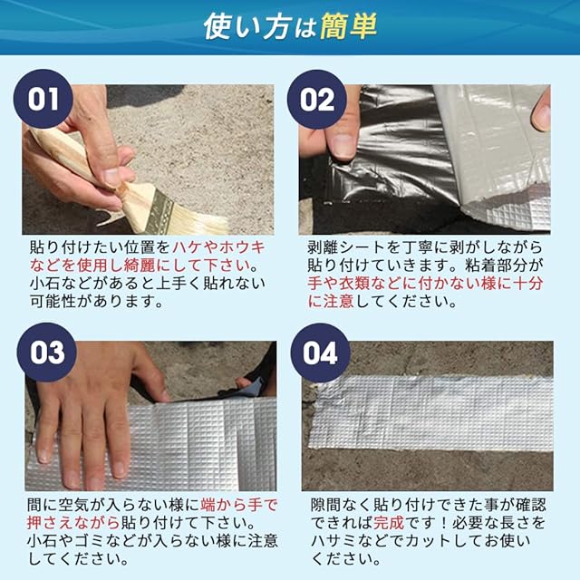 特殊加工により防水・耐熱・難燃・防音・防振・防湿・絶縁等、性能に優れていますので、様々なシーンでご利用いただけます。 ※商品はシワなく貼り付けていただくようお願いいたします。