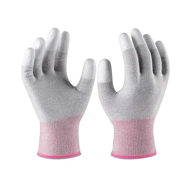 [ThxToms] 静電気防止手袋 作業用 手袋 電気絶縁 グローブ 静電防止手袋 軍手 指先コーティング 背抜き 滑り止め 薄手 男女兼用 電気工事/パソコン/園芸/アウトドア/DIY/防災用 Sサイズ