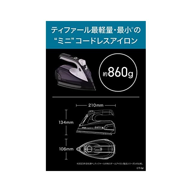 ティファール コードレス スチームアイロン (ジェットスチーム 最大80g/分) 最短30秒立ち上がり フッ素樹脂かけ面 かけたまま「フリームーブ ミニ」 FV6111J0