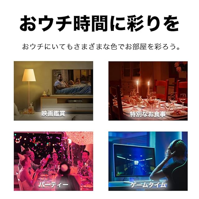 【特徴】 マルチカラーであかるさを変えられるスマートな電球登場。たくさんの色があります。