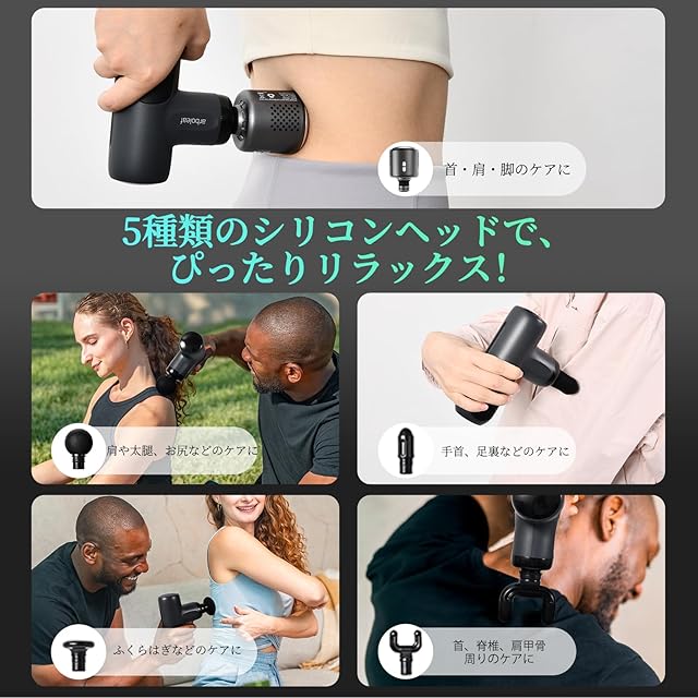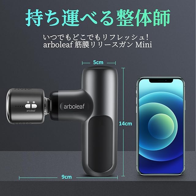商品名:arboleaf 筋膜リリースガン ハンディガン MINI 温冷機能付きヘッド 自適応モード 5種類シリコンヘッド 5段階強力振動 筋膜リリース 筋膜ガン Type-C充電式 大容量バッテリー付き 最速3200回/分 390g軽量 静音 携帯便利 収納袋&日本語取扱説明書付き プレゼント ギフト最適 日本国内サポート 一年メーカー