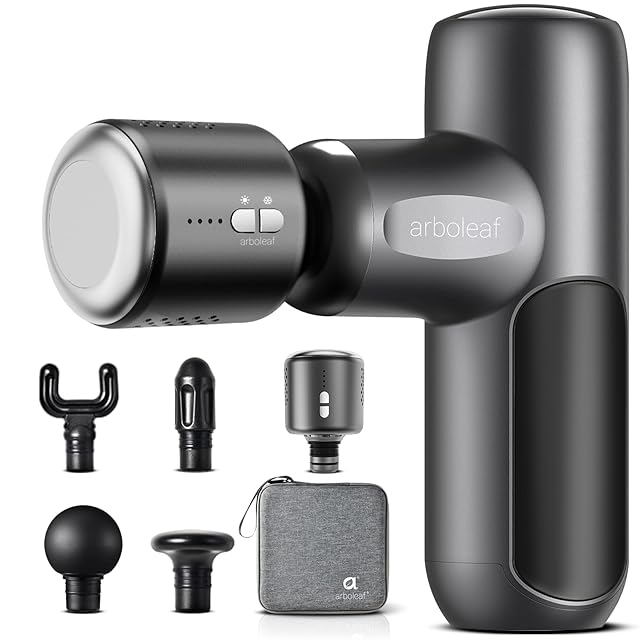arboleaf 筋膜リリースガン ハンディガン MINI 温冷機能付きヘッド 自適応モード 5種類シリコンヘッド 5段階強力振動 筋膜リリース 筋膜ガン Type-C充電式 大容量バッテリー付き 最速3200回/分 390g軽量 静音 携帯便利 収納袋&日本語取扱説明書付き プレゼント ギフト最適 日本国内サポート 一年メーカー