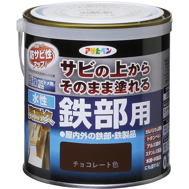 アサヒペン 塗料 ペンキ 水性高耐久鉄部用 0.7L チョコレート色 水性 サビの上からそのまま塗れる ツヤあり 低臭 サビドメ剤配合 特殊フッ素樹脂配合 紫外線劣化防止剤配合 日本製