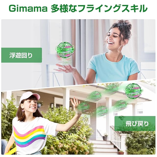 商品名:Gimamaフライングボール ジャイロ 飛行ボールトイ UFOおもちゃ ブーメランスピナー LEDライト付き クリスマス 人気を集めているプレゼント (グリーン)