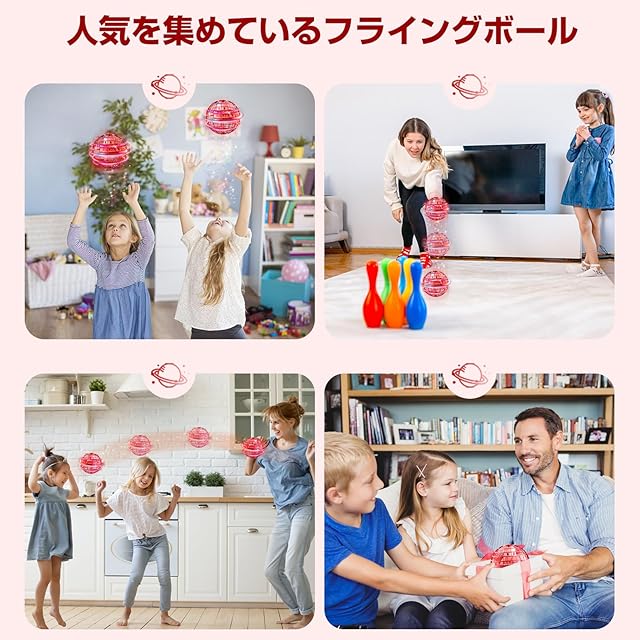 【人気を集めているプレゼント】フライングボールは大人気なおもちゃであるため、子どもから大人まで誰でも面白くて楽しく遊べる。多様な遊び方の発見とともに、ストレス解消することやインテリジェンス発展することができると考えられる。友達や兄弟や家族などと一緒に遊べると、運転技巧や遊び方をシェアして、チームワーク能力も向上させる。現時代に電子製品に夢中になっている子どもにとって外向活発な性格を養われ、アウトドアに最適なおもちゃである。