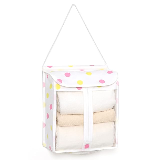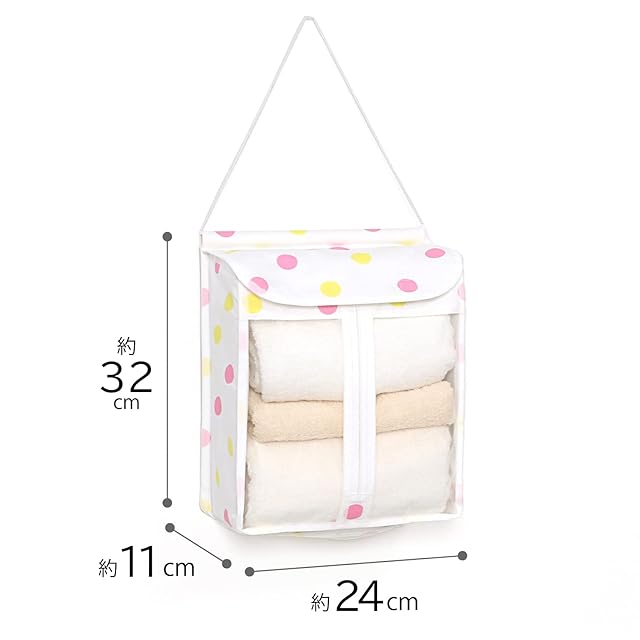 商品名:アストロ タオル 収納ケース ホワイト ドット柄 綿生地 タオルストッカー 壁掛け 吊り下げ タオル入れ 611-88