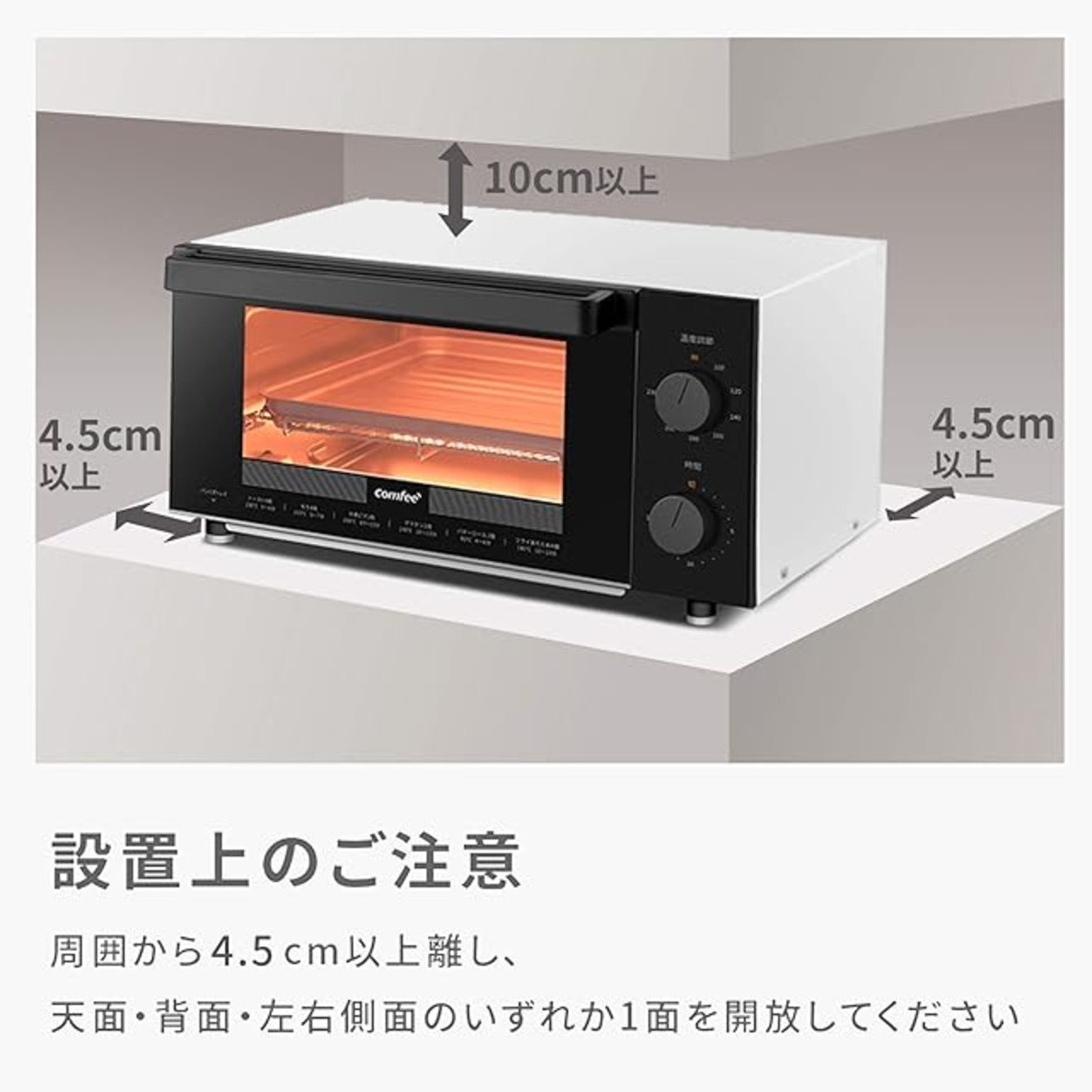 COMFEE' オーブントースター 4枚焼き 12L イマー設定 1200W 上下ヒーター トレー付き お手入れ簡単 省スペース設計 CF-AC121