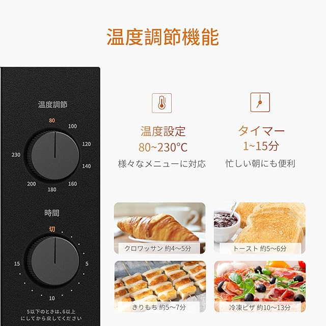 【幅広い料理に対応】80℃~230℃の無段階温度調整ができ、グラタン、ピザ、クッキーなど、さまざま料理に活躍してくれます。