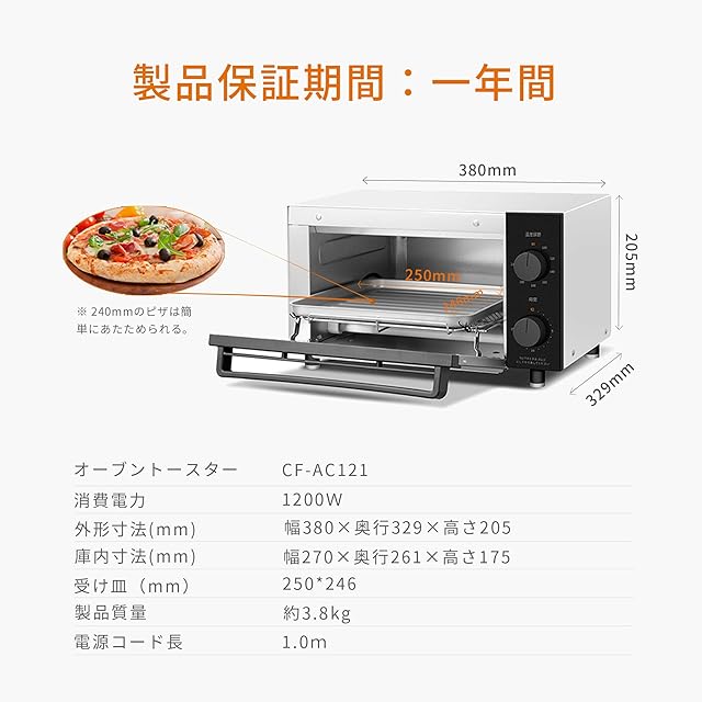 商品名:COMFEE' オーブントースター 4枚焼き 12L イマー設定 1200W 上下ヒーター トレー付き お手入れ簡単 省スペース設計 CF-AC121