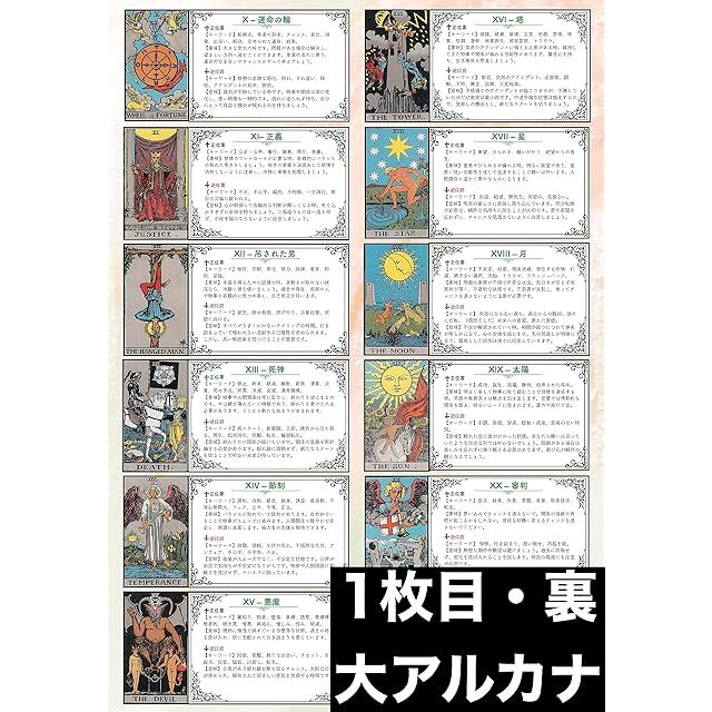 【ウェイト版ライダータロット解説下敷き】初心者から熟練者まで幅広く対応する、最もスタンダードなタロットカードのウェイト版です。全78枚の絵柄、キーワード、正位置・逆位置の意味を網羅した一覧表付きで、カードの意味が一目で把握可能。下敷きはコンパクトなA4サイズで、大アルカナ1枚・小アルカナ2枚の3枚組になっており、持ち運びも容易です。学習やリーディングに最適なタロットの解説早見表としても活用いただけます。さらに、安心の日本製として、国内の専門工場で厳格な品質管理の下に生産されています。品質と安全性の信頼性はされています。