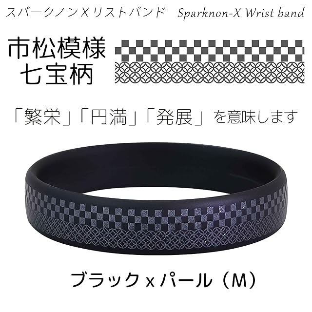 商品名:[OLUAGE] 日本製 静電気防止 グッズ 静電気除去 和柄 ブレスレット スパークノンX リストバンド (市松七宝 ブラックxパール M サイズ)