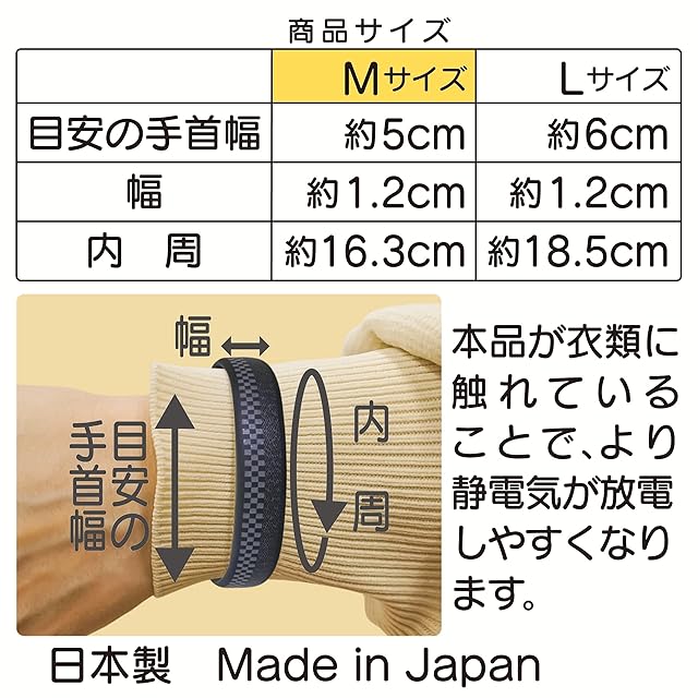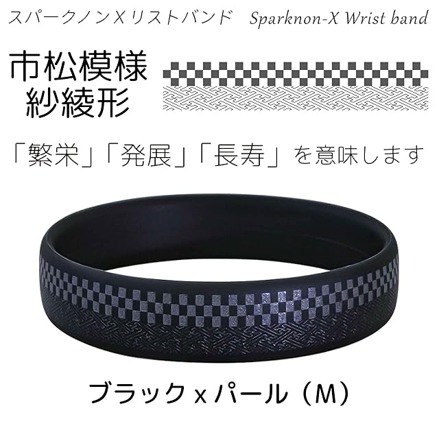 商品名:[OLUAGE] 日本製 静電気防止 グッズ 静電気除去 和柄 ブレスレット スパークノンX リストバンド (市松紗綾 ブラックxパール M サイズ)