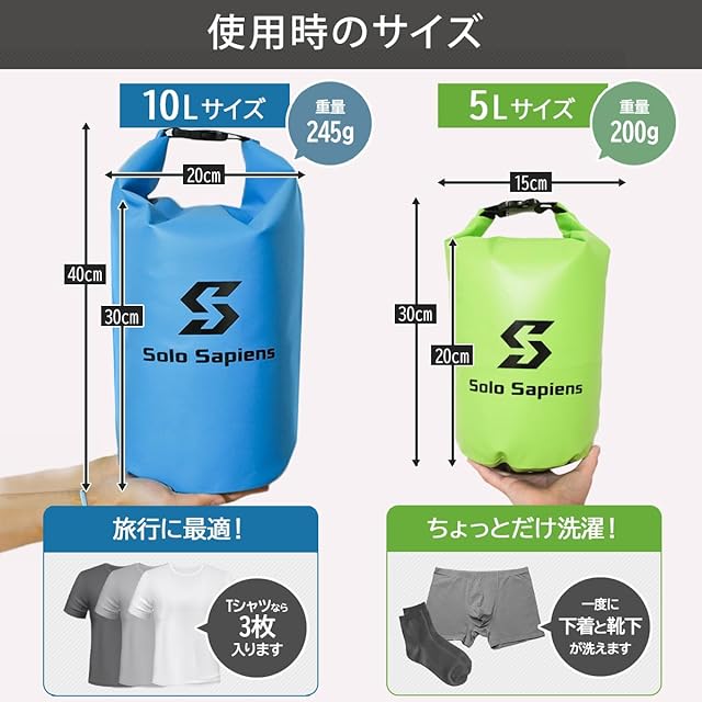 バックパッカーやソロトラベラーのためのブランド、Solo Sapiens(ソロサピエンス)がプロデュース!!丈夫で高品質。最も実用的な10Lサイズの洗濯バッグで、旅先での洗濯を便利にします!!