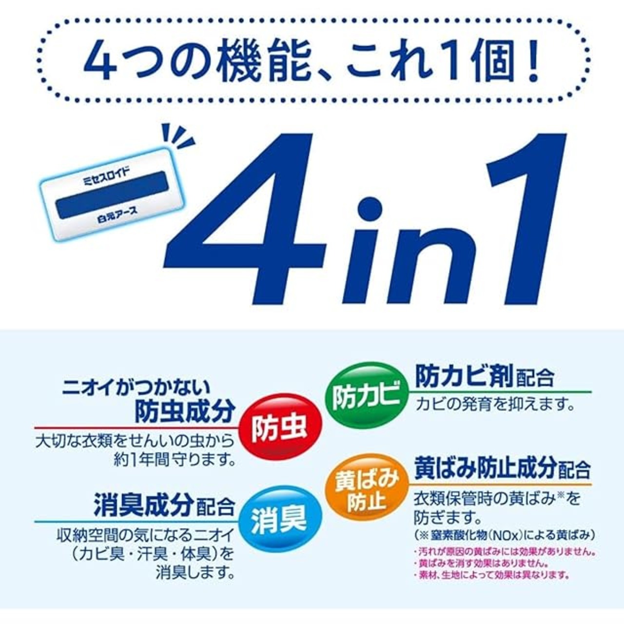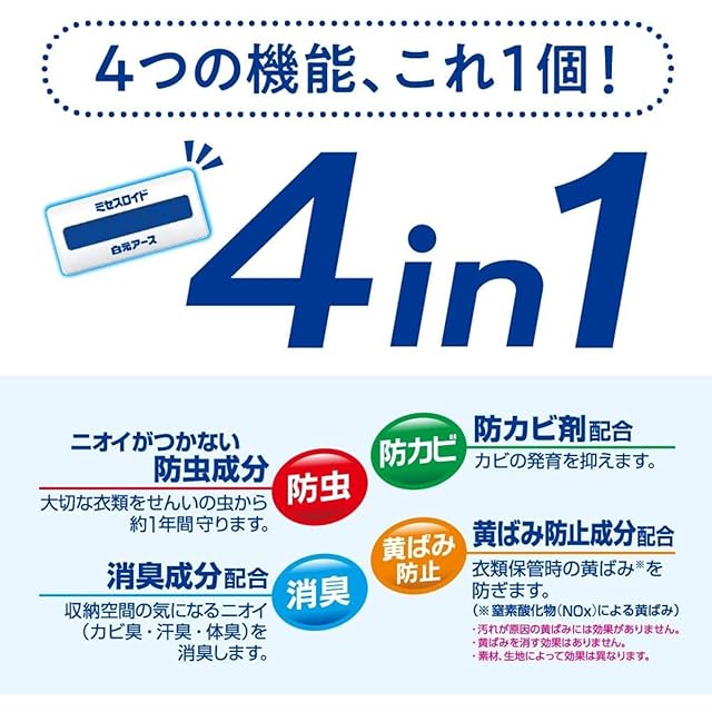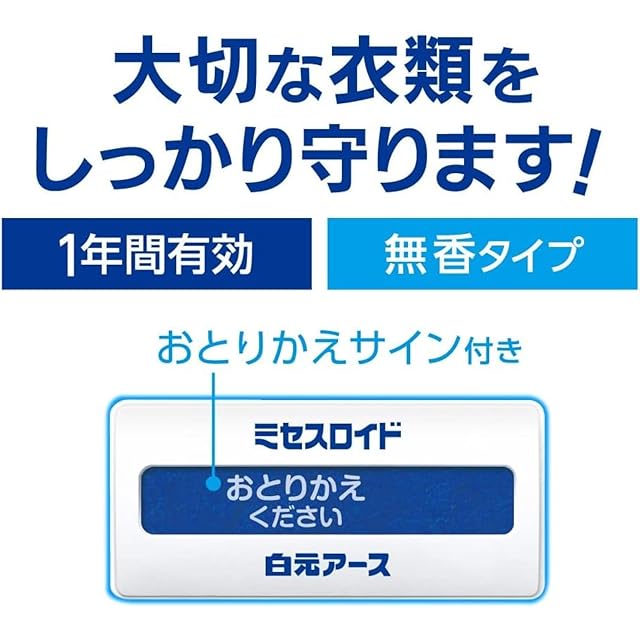 商品名:ミセスロイド 白元アース 衣類防虫剤 引き出し・衣装ケース用 64個 無香 無臭 1年間有効 収納空間のダニよけ効果付き 虫除け 防カビ 消臭 黄ばみ防止