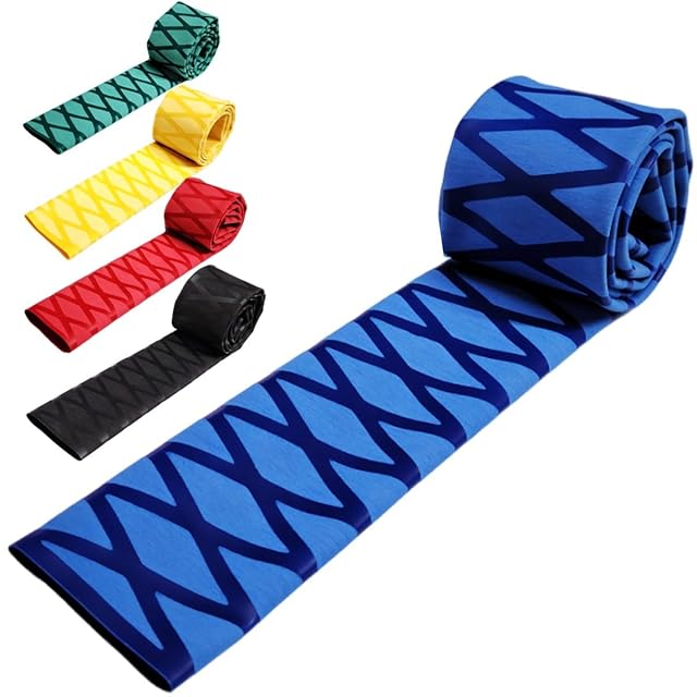 滑り止め、耐熱性、防水性に優れた熱収縮チューブです。表面には荒し加工を施しているため滑りにくく、水にぬれても握り具合は変わりません。黒・黄・緑・青・赤のカラーがあります。