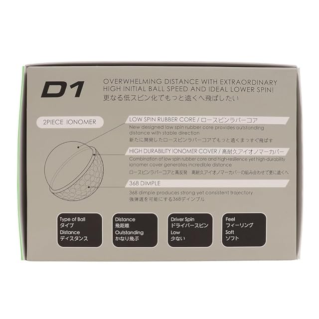 商品名:ホンマ ゴルフ ボール D1 D-1 BT2201 2ピース ソフト アイオノマー 飛び系 飛距離 ディスタンス ゴルフボール 1ダース 12球 コスパ 本間ゴルフ 本間 HONMA/BT2201/グリーン